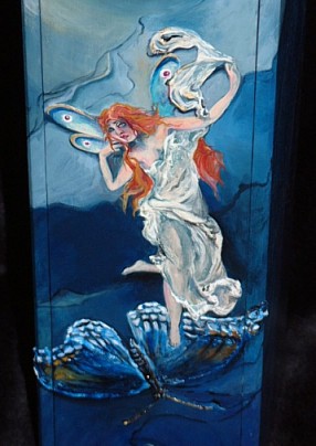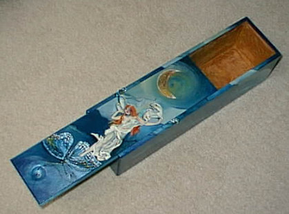 During their melody of flight, the winged duo dance light and color into a sweetness of life. Butterflies and those of the Fairy Realm extend opportunities for transformation, joy and growth. This wooden box is for sale$90.00